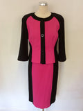 VIYELLA BLACK & HOT PINK COLOUR BLOCK DRESS AND JACKET SUIT