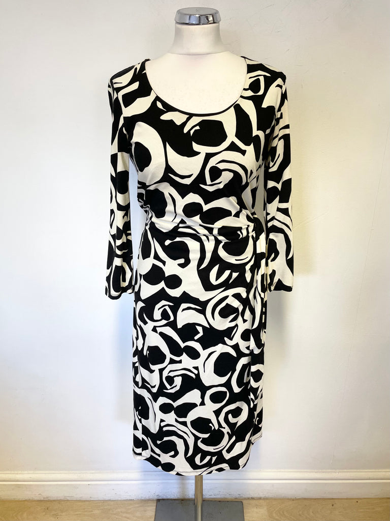 VIYELLA BLACK & WHITE PRINT 3/4 SLEEVED JERSEY PENCIL DRESS SIZE 8