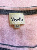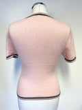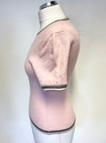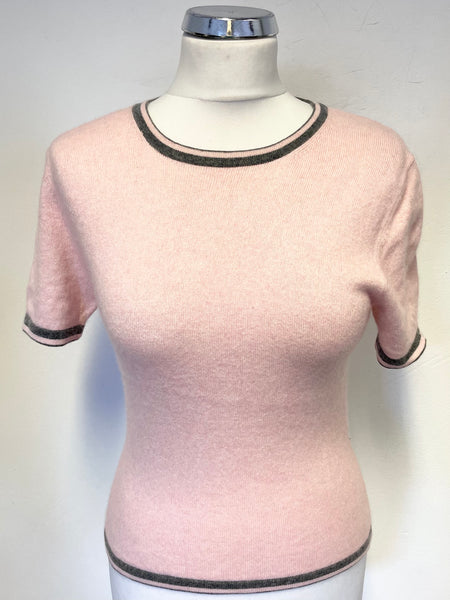 VIYELLA SILK & CASHMERE BLEND PINK & GREY TRIM SHORT SLEEVED JUMPER SIZE S/M