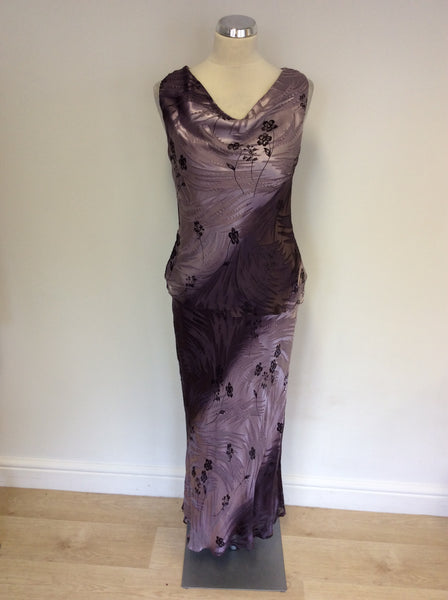 VIYELLA PURPLE & LILAC PRINT SILK BLEND TOP & LONG SKIRT SIZE 8/10