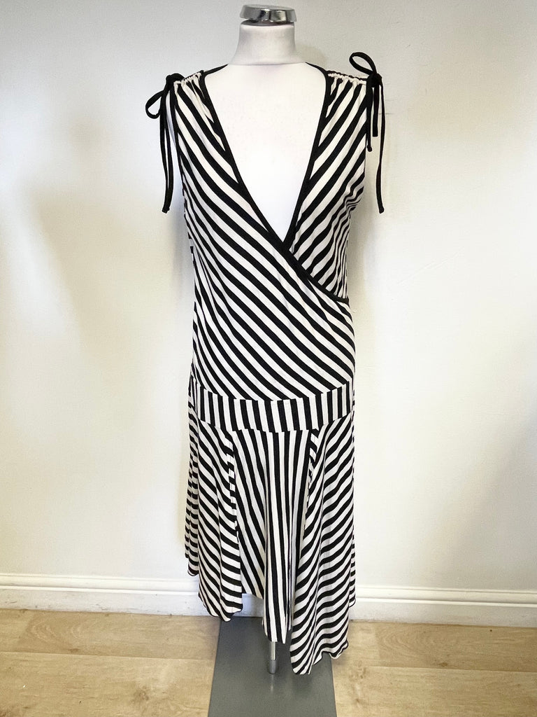 WHISTLES BLACK & WHITE STRIPED WRAP ACROSS SLEEVELESS DRESS SIZE 14