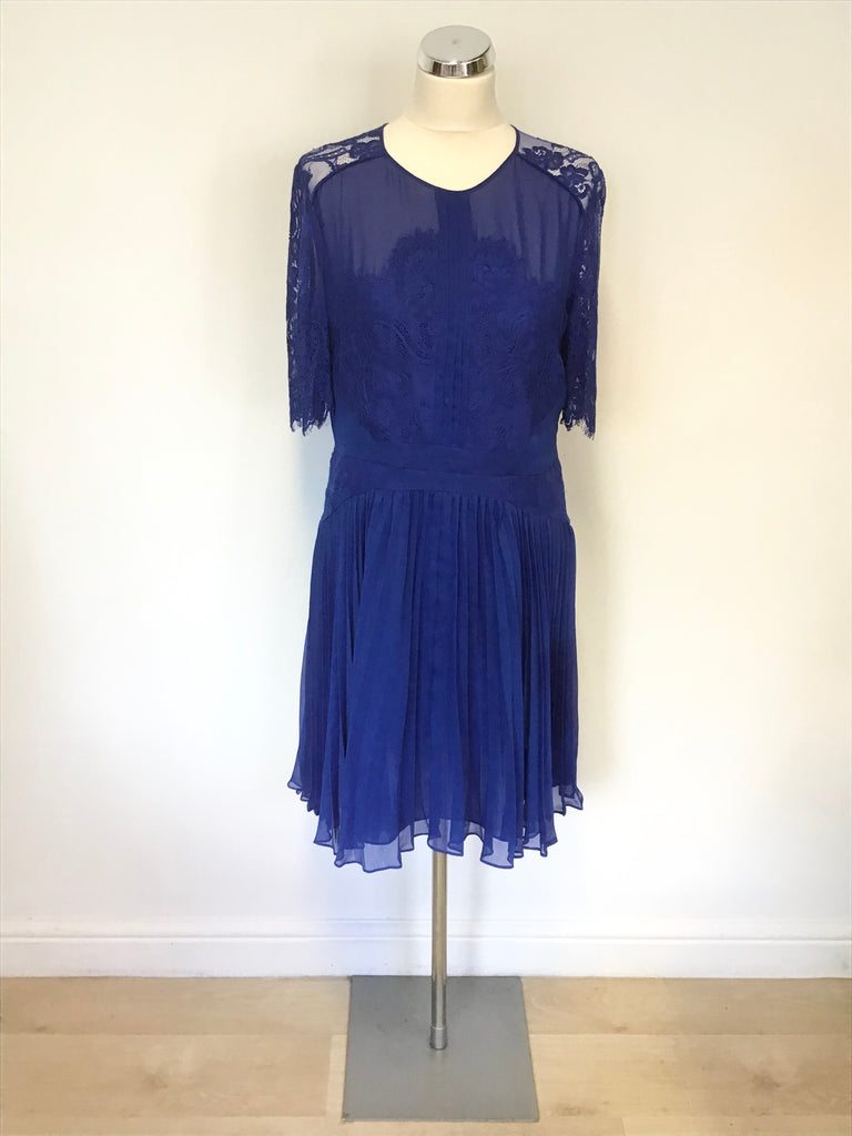 WHISTLES BLUE LACE & PLEATED OCCASION DRESS