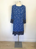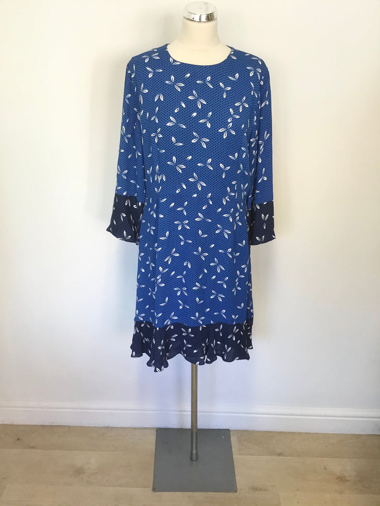 WHISTLES BLUE SPOT & WHITE FLOWER PRINT 3/4 SLEEVE DRESS SIZE 14