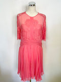 WHISTLES CORAL PINK LACE BODICE SHORT SLEEVE PLEATED SKIRT FIT & FLARE DRESS SIZE 16