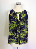 WHISTLES DARK BLUE & LIME GREEN SILK PRINT TOP SIZE 12