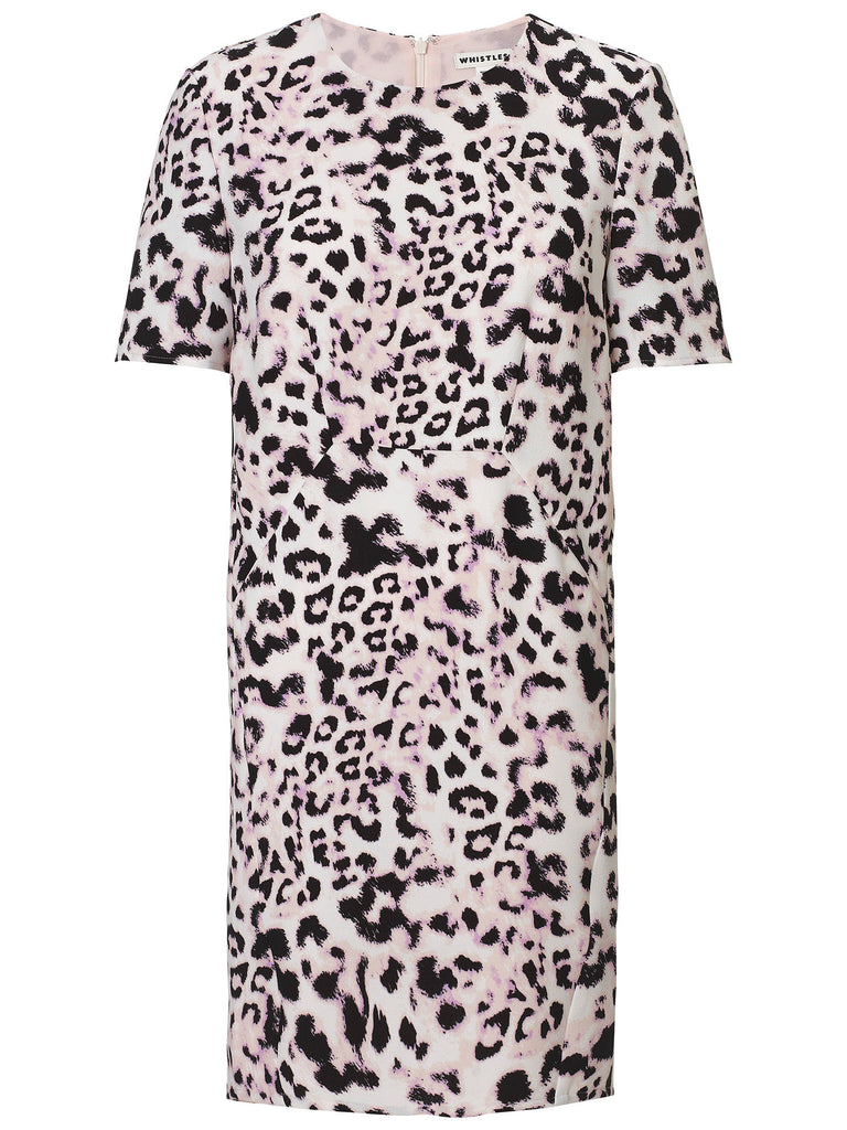 WHISTLES MEGHAN PINK LEOPARD PRINT SHORT SLEEVE SHIFT DRESS SIZE 14
