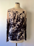 WHISTLES PALE PINK,GREYS & BLACK PRINT COTTON JUMPER SIZE 12