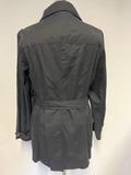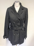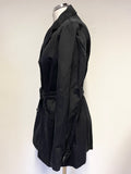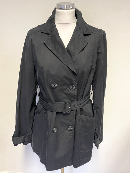 AUSTIN REED BLACK COLLARED DOUBLE BREASTED BELTED SHORT MAC SIZE 12