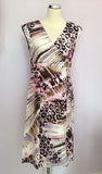 Betty Barclay Pink, Lilac White & Brown Print Linen Dress Size 12