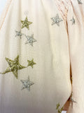 BRAND NEW GHOST PALE PEACH SILVER & GOLD STAR EMBROIDERED SHORT SLEEVED MIDI WRAP DRESS