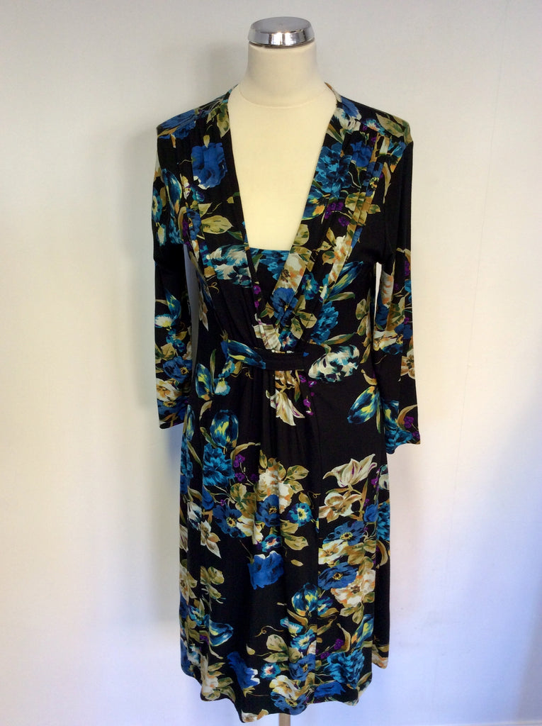 BRAND NEW POMODORO BLACK & FLORAL PRINT STRETCH JERSEY DRESS SIZE 10