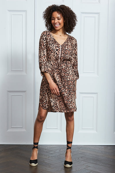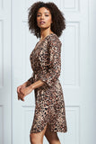 BRAND NEW WITH TAGS SOSANDAR BROWN LEOPARD PRINT ZIP FRONT TIE WAIST SHIRT DRESS