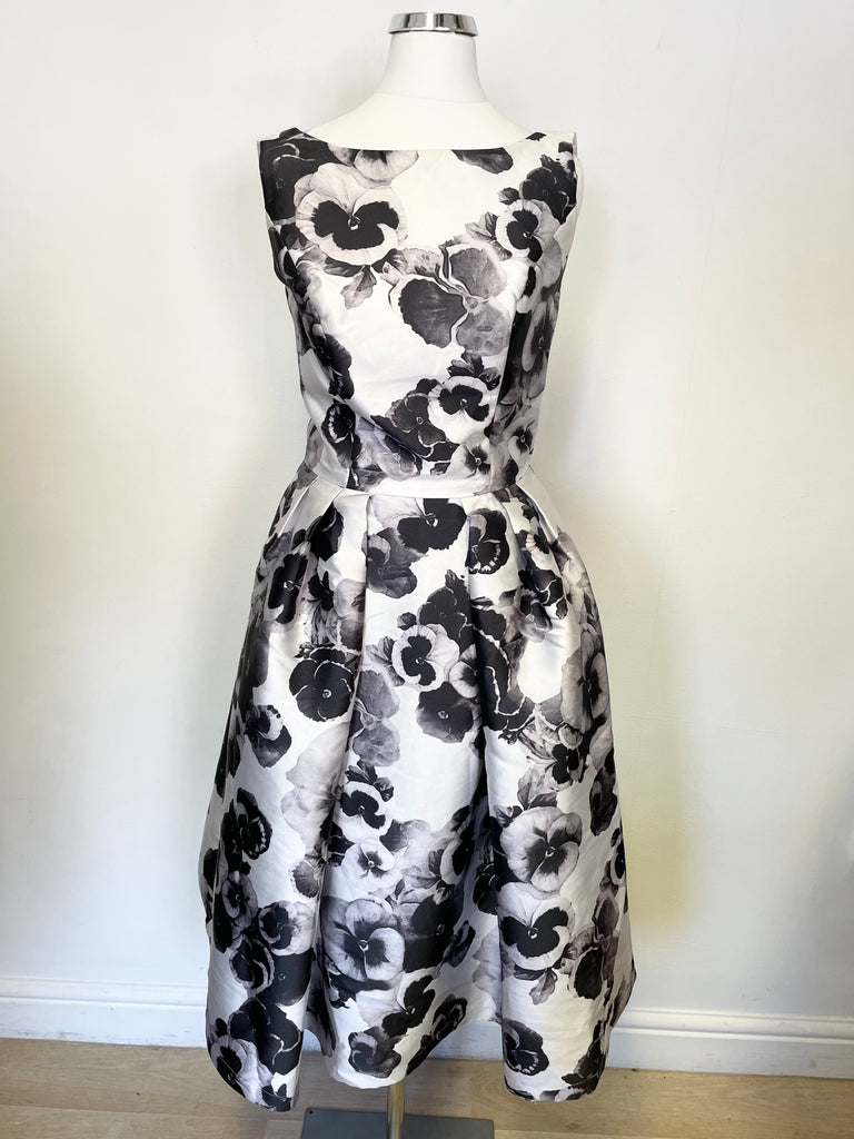 CHI CHI LONDON BLACK & SILVER GREY FLORAL PRINT FIT & FLARE SPECIAL OCCASION DRESS