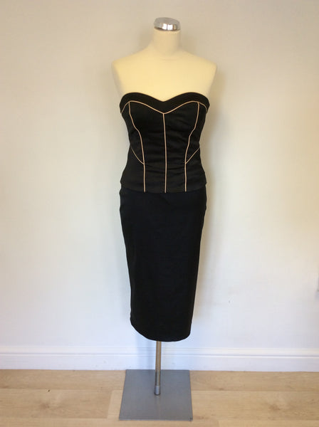 COAST BLACK MATT SATIN & PALE PINK TRIM BUSTIER & PENCIL SKIRT SIZE 8/10