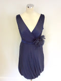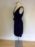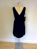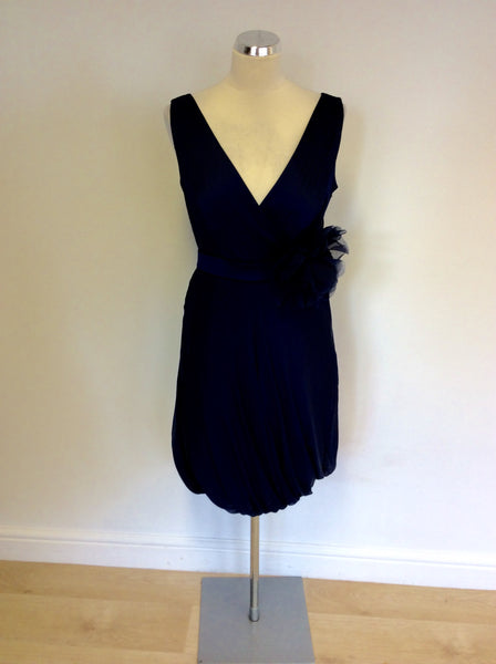 COAST DARK BLUE SILK BLEND FLOWER TRIM BUBBLE HEM DRESS SIZE 10