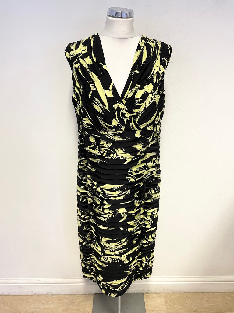 GOLD BY MICHAEL H BLACK & CITRUS PLEATED SLEEVELESS PENCIL DRESS SIZE 18