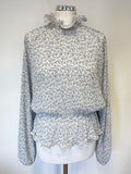 GOLDEN LIVE BLUE DITSY FLORAL PRINT LONG SLEEVE BLOUSON TOP SIZE S
