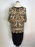 HOBBS CAMEL & BLACK PRINT KNIT SHIFT DRESS SIZE 14