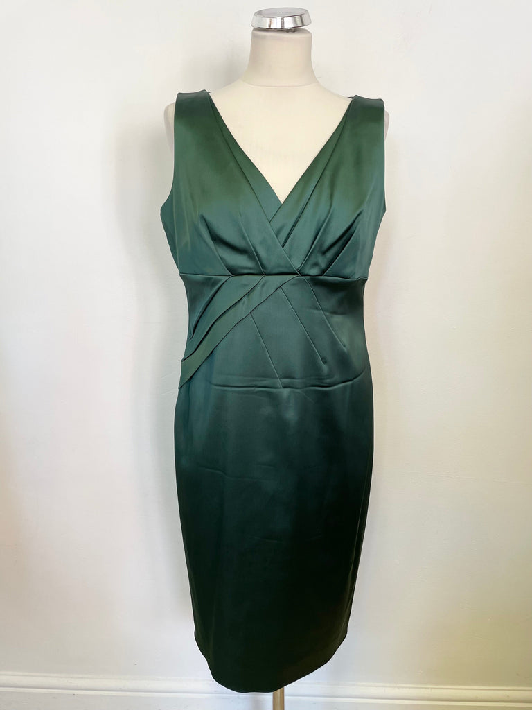 HOBBS HADLEY BOTTLE GREEN SATIN SLEEVELESS SPECIAL OCCASION PENCIL DRESS SIZE 14