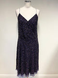 HOBBS PURPLE SEQUINNED SILK STRAPPY COCKTAIL DRESS SIZE 12