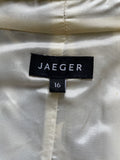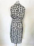 JAEGER SILK MIX GREY & IVORY PRINT SLEEVELESS BELTED SHEATH DRESS SIZE 16
