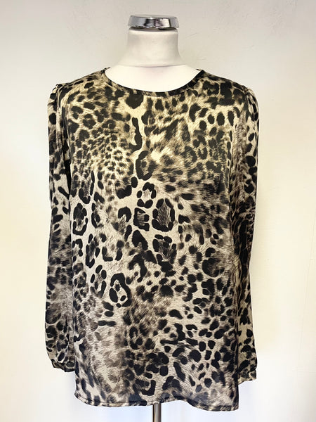 JAMES LAKELAND BLACK & BROWN LEOPARD PRINT LONG SLEEVED TOP SIZE 14