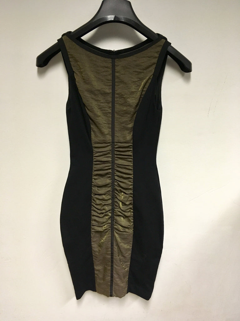 KAREN MILLEN BLACK & BRONZE PANEL TRIM BODYCON DRESS SIZE 8