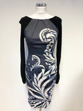 KAREN MILLEN BLACK & GREY PRINT LONG SLEEVED PENCIL DRESS SIZE 6