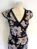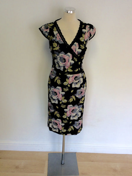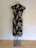 KAREN MILLEN BLACK & PINK FLORAL PRINT PENCIL DRESS SIZE 10