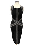 KAREN MILLEN BLACK & WHITE BRAID TRIM SLEEVELESS BODYCON DRESS