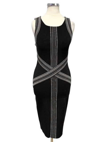 KAREN MILLEN BLACK & WHITE BRAID TRIM SLEEVELESS BODYCON DRESS SIZE 2 UK 8/10