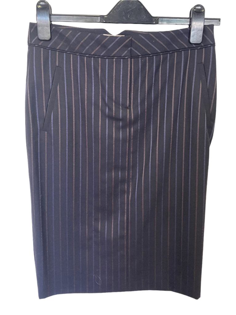 KAREN MILLEN BLACK WITH NAVY & BRONZE STRIPE PENCIL SKIRT SIZE 8