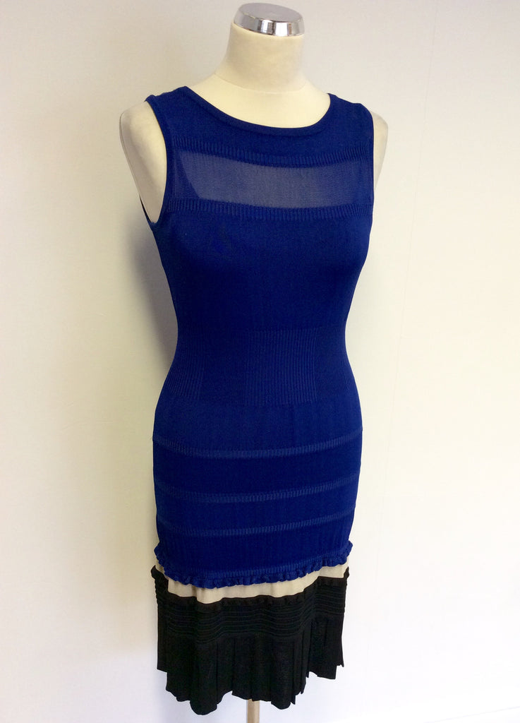KAREN MILLEN BLUE & BLACK STRETCH FINE KNIT STRETCH DRESS