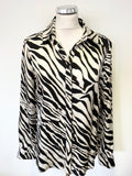 KAREN MILLEN IVORY,BLACK & BROWN ZEBRA PRINT LONG SLEEVED SHIRT SIZE 12