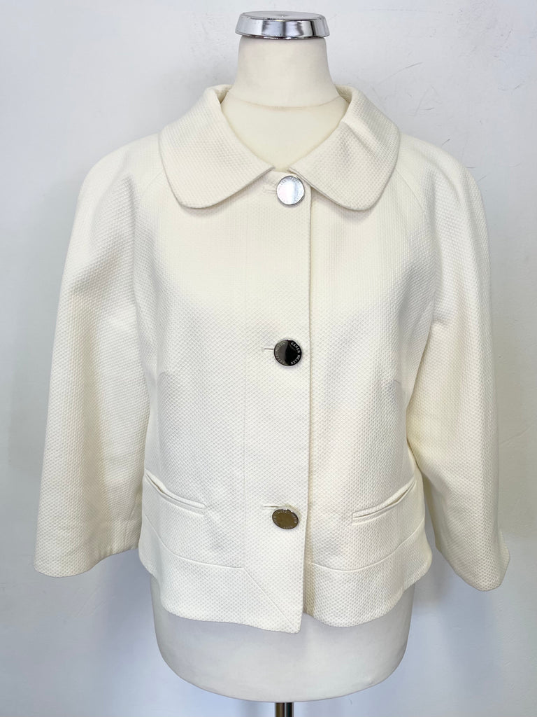 KAREN MILLEN IVORY TEXTURED COLLARED 3/4 SLEEVED SHORT JACKET SIZE 12