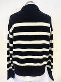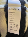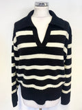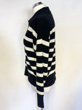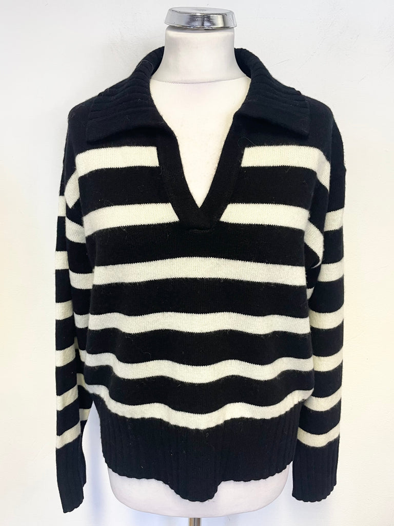 LILYSILK BLACK & WHITE STRIPED COLLARED V NECK LONG SLEEVED JUMPER SIZE S