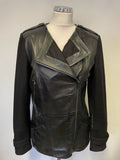 LK BENNETT BLACK LEATHER & WOOL SLEEVE BIKER STYLE JACKET SIZE 10