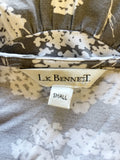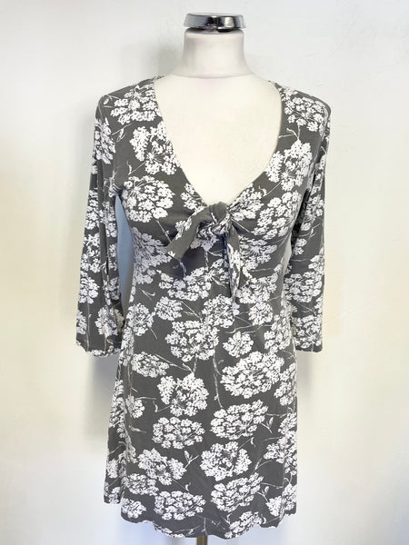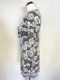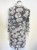 LK BENNETT GREY & WHITE FLORAL PRINT STRETCH JERSEY 3/4 SLEEVED TOP SIZE 8