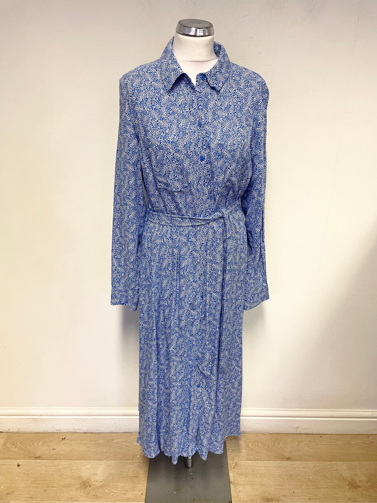 MARKS & SPENCER BLUE PRINT LONG SLEEVED MIDI DRESS SIZE 14