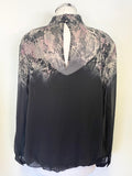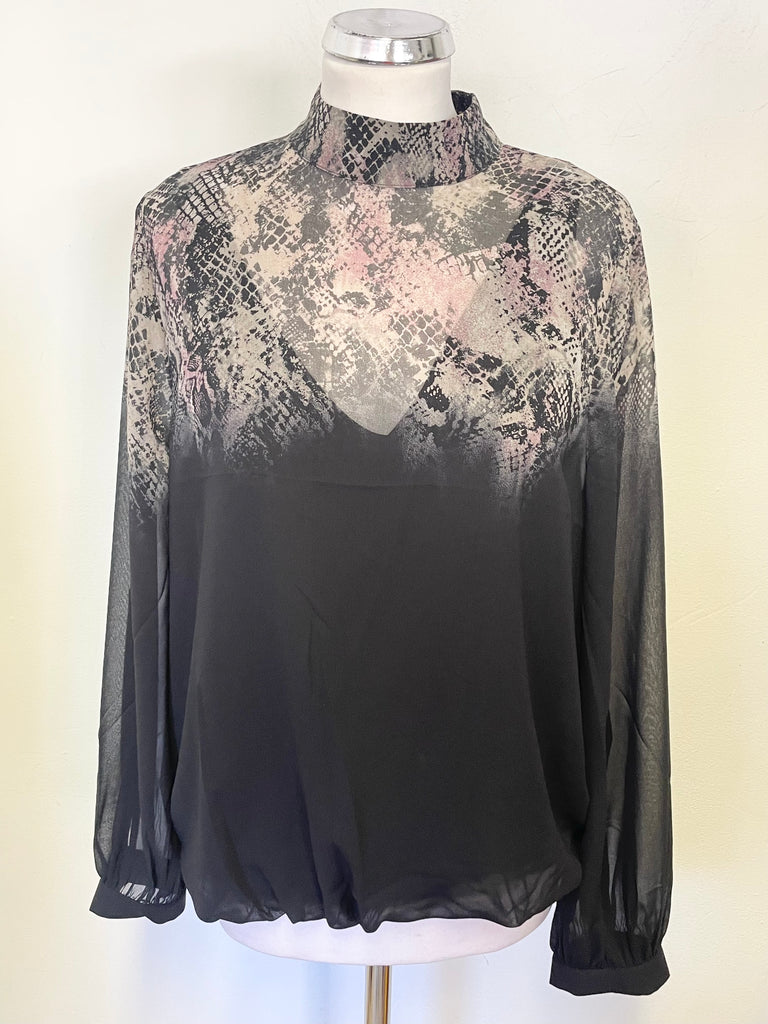 MINT VELVET BLACK SNAKESKIN PRINT HIGH NECK LONG SLEEVED BLOUSON TOP SIZE 14