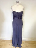 MONSOON 100% SILK GRAPE STRAPLESS EVENING/OCCASION DRESS SIZE 12