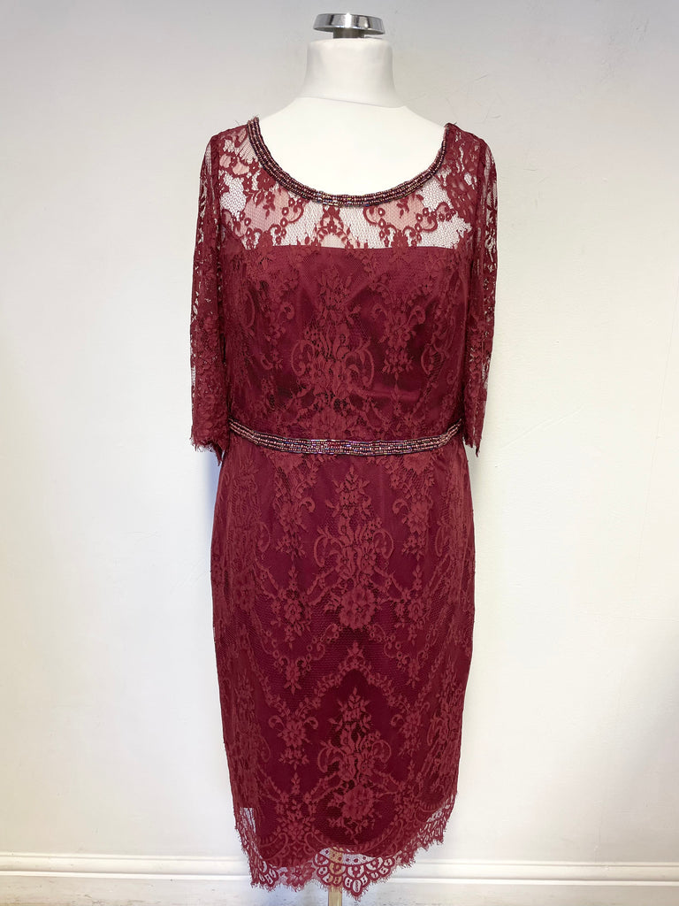 MONSOON DEEP RED LACE BEAD TRIM SPECIAL OCCASION DRESS SIZE 18