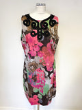 MONSOON MULTI COLOURED FLORAL PRINT EMBELLISHED SHEATH DRESS SIZE 16
