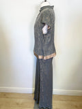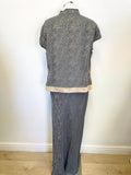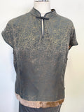 MONSOON SILK BLEND PETROL BLUE & GOLD FLORAL PRINT TOP & LONG SKIRT SIZE 18