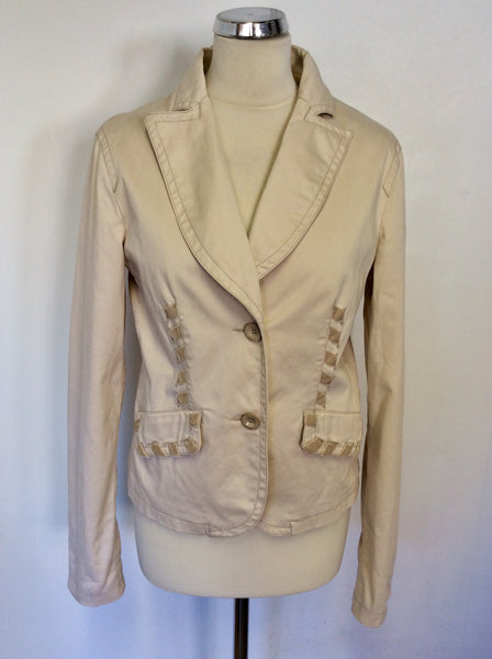 MOSCHINO JEANS CREAM COTTON STITCH TRIM JACKET SIZE 14