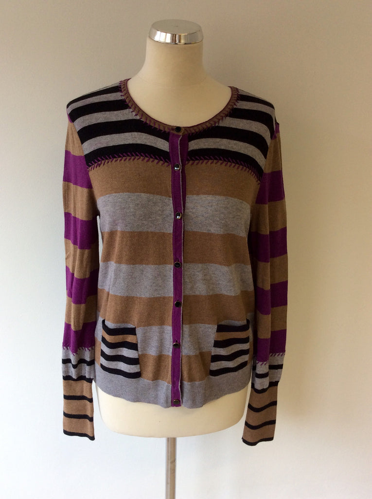 OUI MOMENTS GREY,BLACK,MUSTARD & PINK STRIPE CARDIGAN SIZE 14