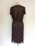 PHASE EIGHT DARK BROWN BEADED & SEQUINNED LACE DRESS & BOLERO JACKET SIZE 10