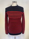 SANDRO PARIS NAVY BLUE & RED STRIPE LONG SLEEVED JUMPER SIZE 2 UK M