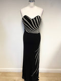TOJOURS PARIS BLACK WITH SILVER & WHITE BEADING STRAPLESS LONG EVENING DRESS SIZE 12