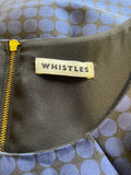 WHISTLES BLACK & BLUE SPOT SHORT SLEEVED A-LINE DRESS SIZE 14